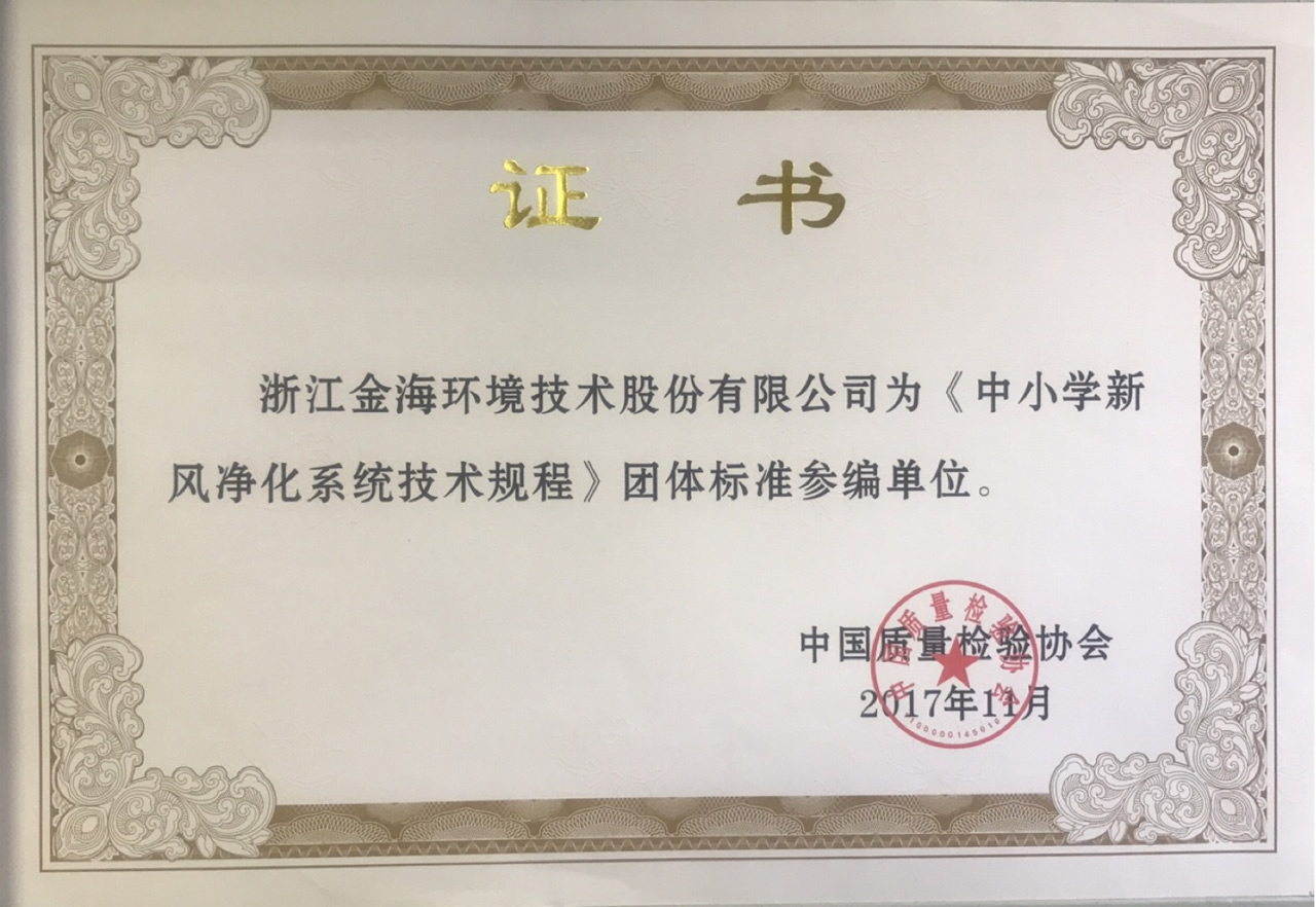 《中小學新風凈化系統(tǒng)技術(shù)規(guī)程》團體標準參編單位