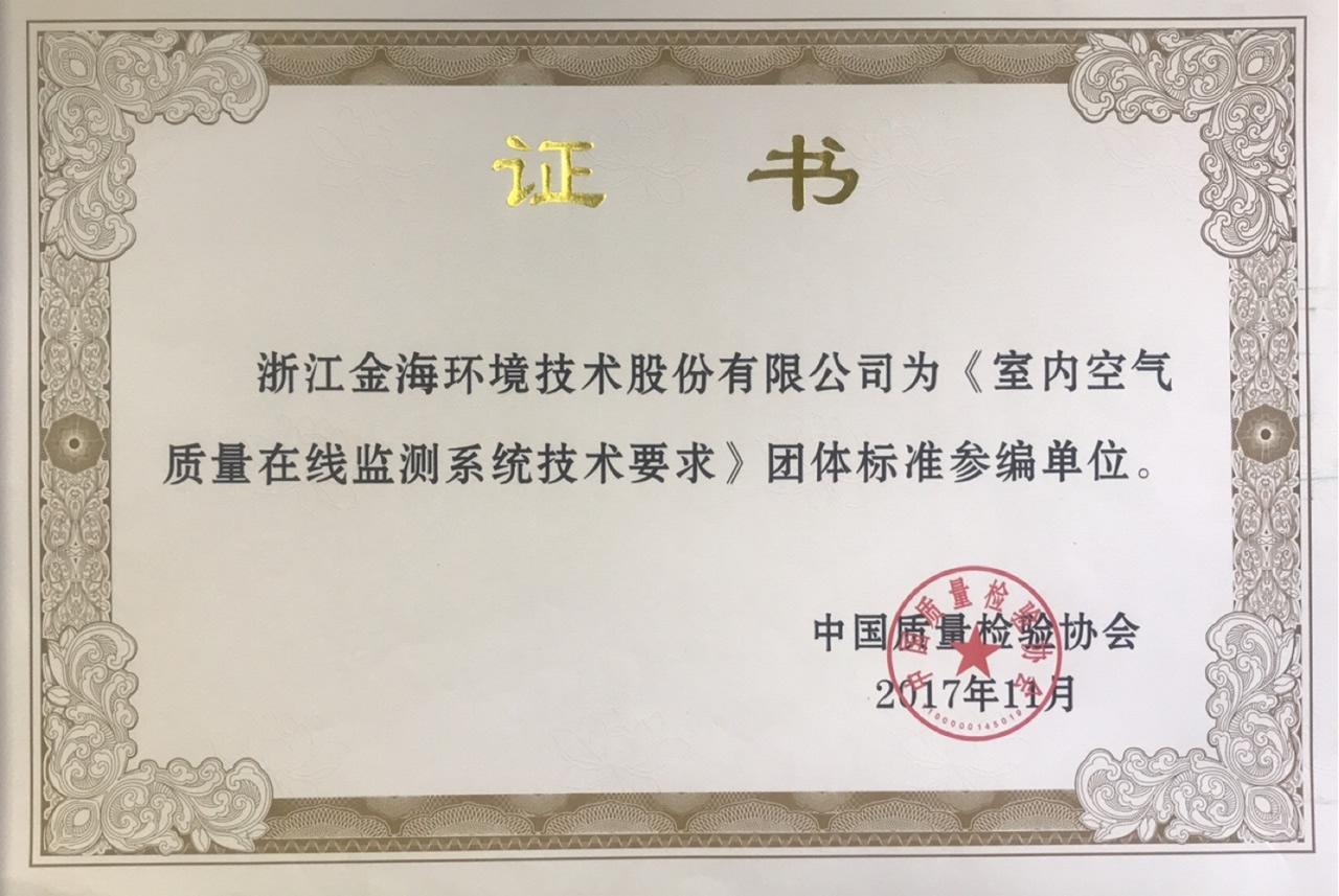 《室內(nèi)空氣質(zhì)量在線監(jiān)測系統(tǒng)技術(shù)要求》團體標準參編單位