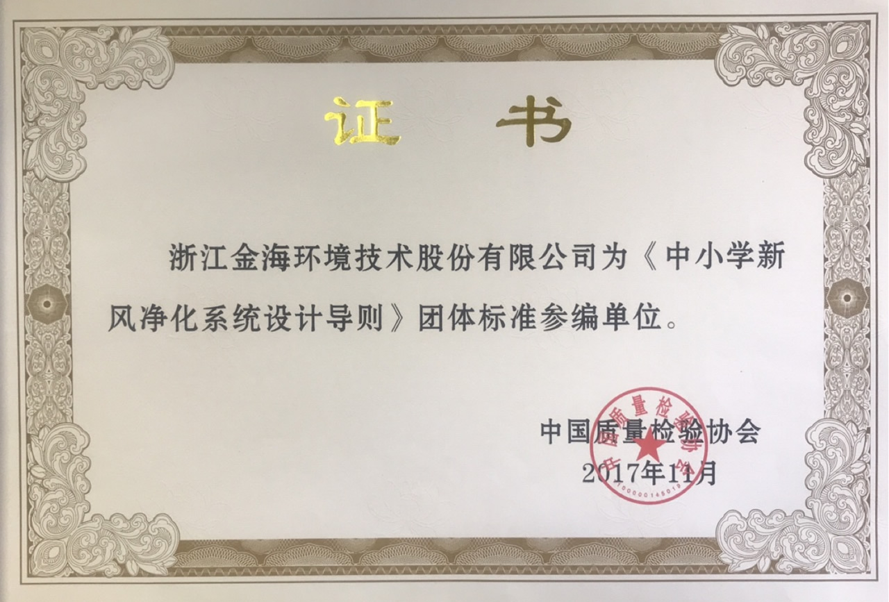 《中小學新風凈化系統(tǒng)設(shè)計導則》團體標準參編單位